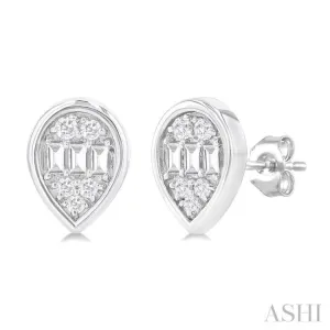 1/5 ctw Petite Bezel Set Pear Shape Fusion Baguette and Round Cut Diamond Fashion Stud Earring in 10K White Gold
